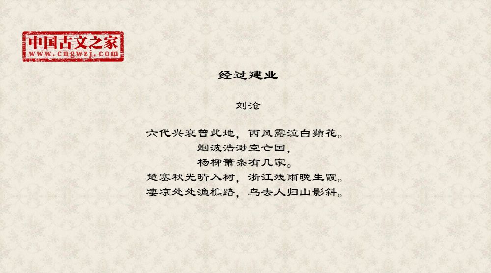 六代兴衰曾此地,西风露泣白蘋花。 烟波浩渺空亡国,杨柳萧条有几家。 楚塞秋光晴...