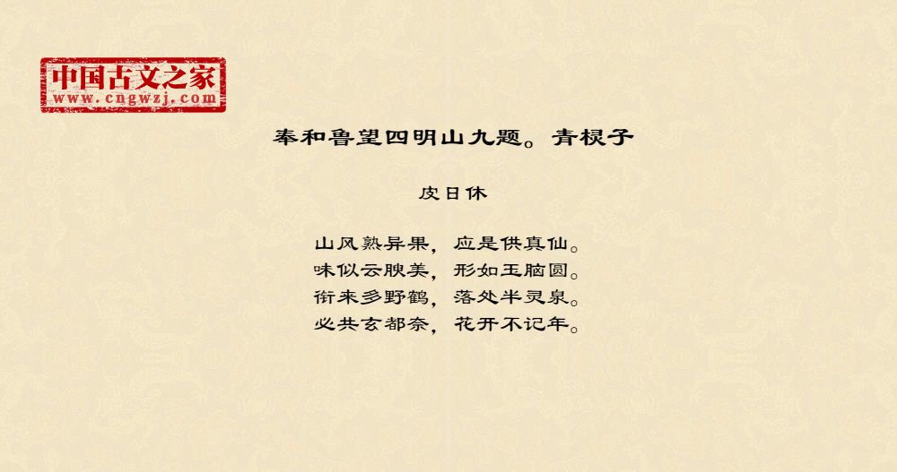 《奉和鲁望四明山九题。青棂子》的原文打印版(皮日休)