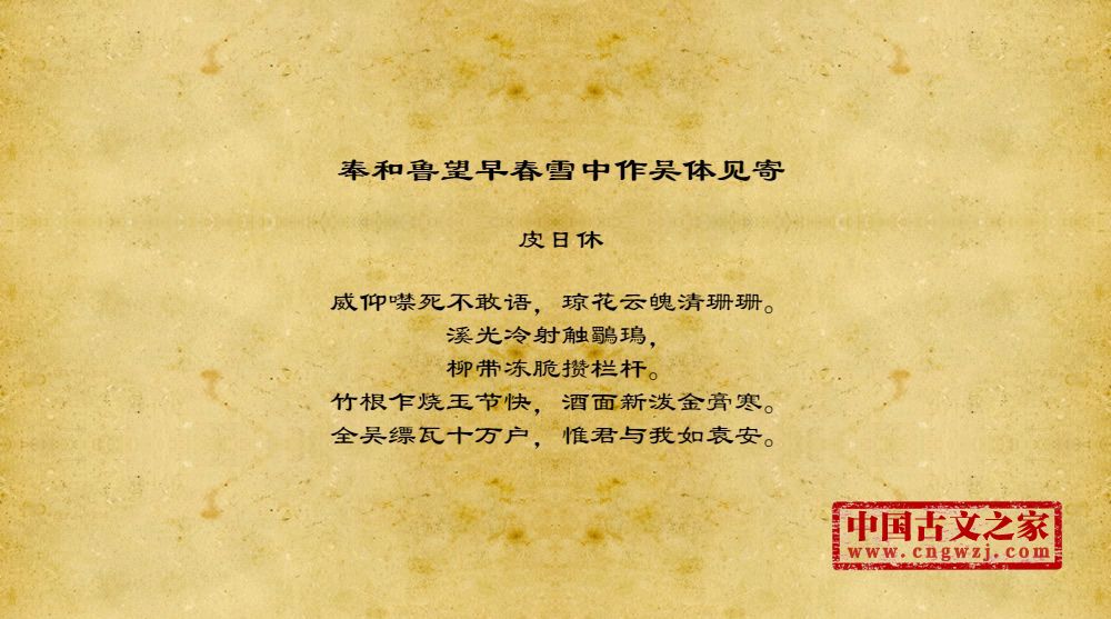 《奉和鲁望早春雪中作吴体见寄》的原文打印版(皮日休)