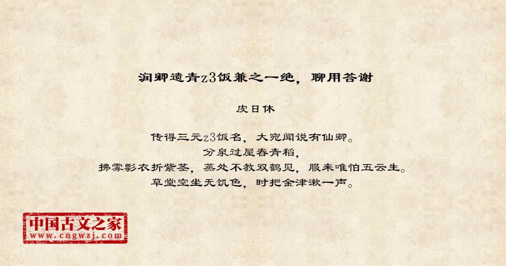 《润卿遗青z3饭兼之一绝,聊用答谢》的原文打印版(皮日休)