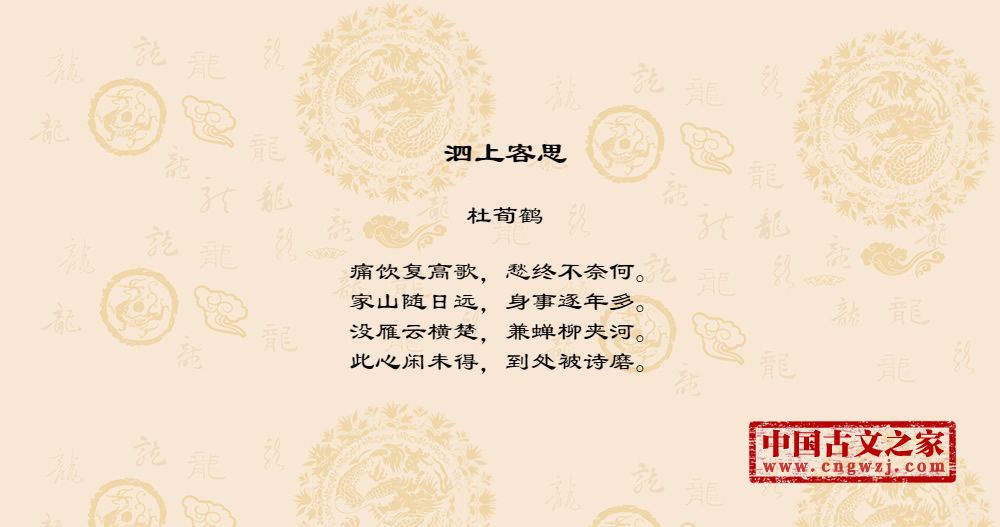 痛饮复高歌,愁终不奈何。家山随日远,身事逐年多。没雁云横楚,兼蝉柳夹河。此心闲未得,到处被诗磨。