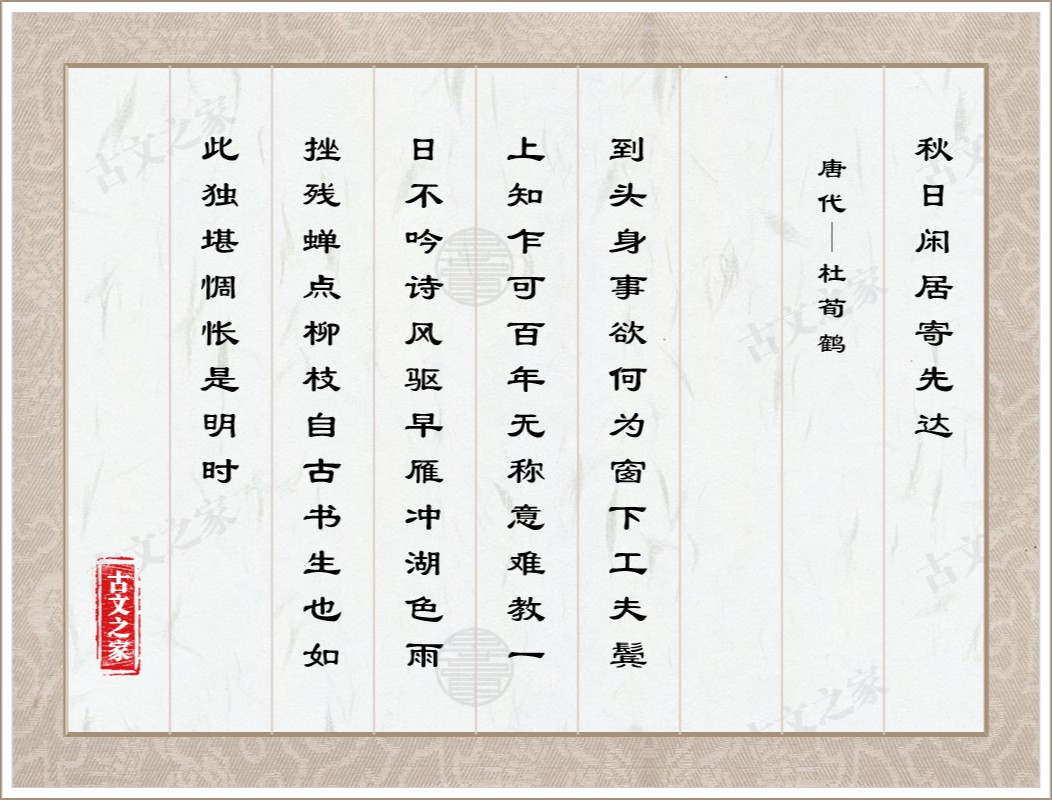 说明:古文之家的工作重心是对古诗文进行校对并注音,我们所提供的译文、注释均来自互联网收集聚合,仅供参考,文章所涉及的字、词发音请以拼音版作为主要参考。