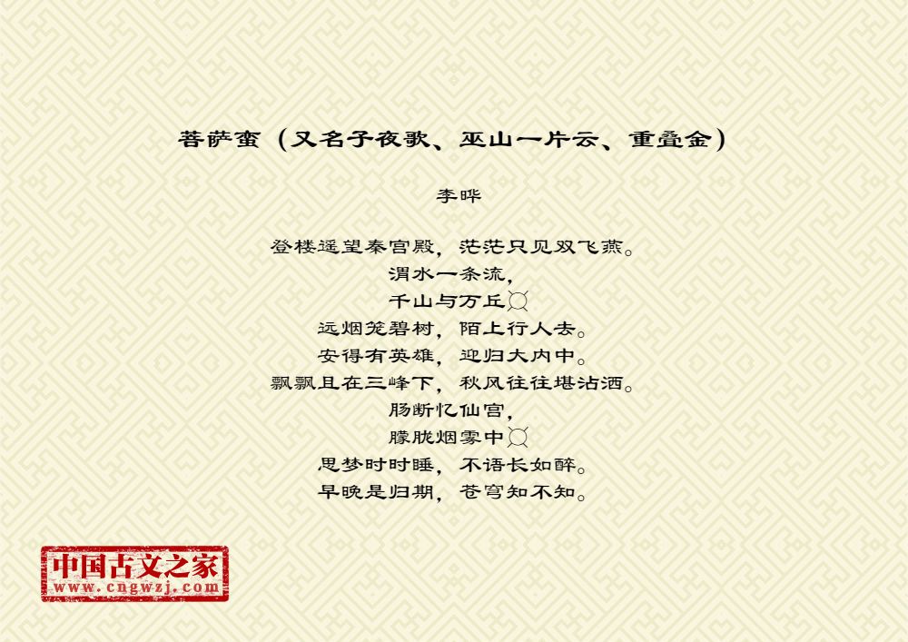 菩萨蛮(又名子夜歌、巫山一片云、重叠金)