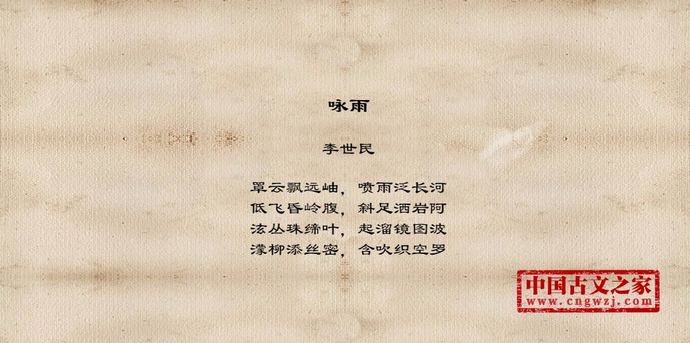 “罩”的意思为“覆盖、笼罩”,“罩云”的意思就是笼罩在天空中的乌云。“远岫”是指远处的峰峦。“岭腹”即半山腰;“岩阿”是指山的曲折处。“泫”的本义是“水珠下滴”;“泫丛”的意思是“一串串下滴的水珠”;“缔叶”是说“(雨滴)结在树叶上”。“起溜”是指河水泛起了一阵阵涟漪。“含吹”这两个字是唐代才有的词,见于唐代的诗文中,它的本意就是“风吹”。如唐.李峤的诗句:“青苹含吹转,紫蒂带波流。”(〈萍〉)也许是古人认为风是“风神”从嘴里吹出的一口气吧,所以把“风次”说成为“含吹”。