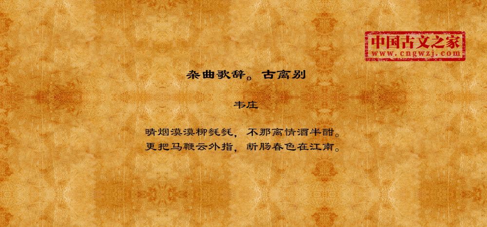 韦庄(约836年─910年),字端己,杜陵(今中国陕西省西安市附近)人,诗人韦应物的四代孙,唐朝花间派词人,词风清丽,有《浣花词》流传。曾任前蜀宰相,