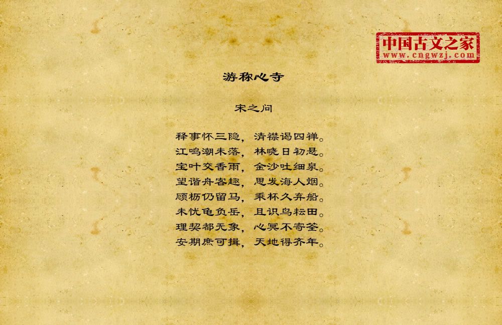 释事怀三隐,清襟谒四禅。江鸣潮未落,林晓日初悬。宝叶交香雨,金沙吐细泉。望谐舟客趣,思发海人烟。顾枥仍留马,乘杯久弃船。未忧龟负岳,且识鸟耘田。理契都无象,心冥不寄筌。安期庶可揖,天地得齐年。