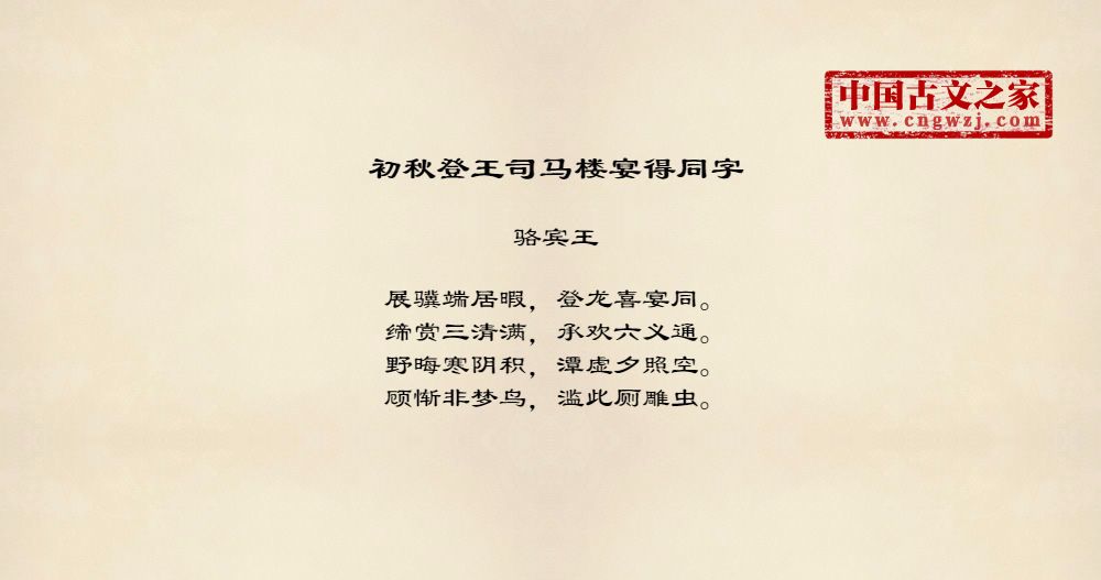 展骥端居暇,登龙喜宴同。缔赏三清满,承欢六义通。野晦寒阴积,潭虚夕照空。顾惭非梦鸟,滥此厕雕虫。
