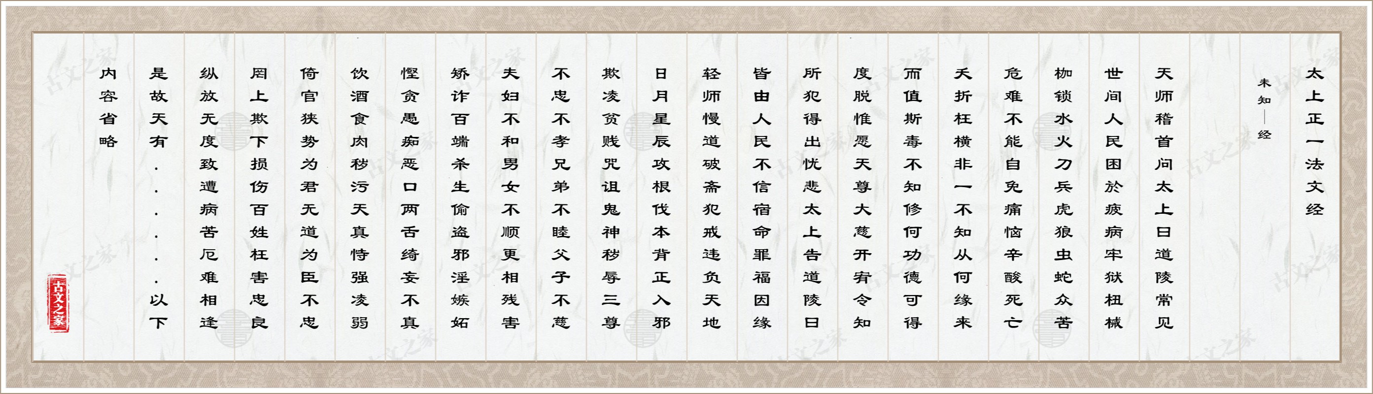 天师稽首问太上曰:道陵常见世间人民,困於疲病牢狱,杻械枷锁,水火刀兵,虎狼虫蛇,众苦危难,不能自免,痛恼辛酸,死亡夭折,枉横非一,不知从何缘来而值斯毒,不知修何功德可得度脱,惟愿天尊大慈开宥,令知所犯,得出忧悲。