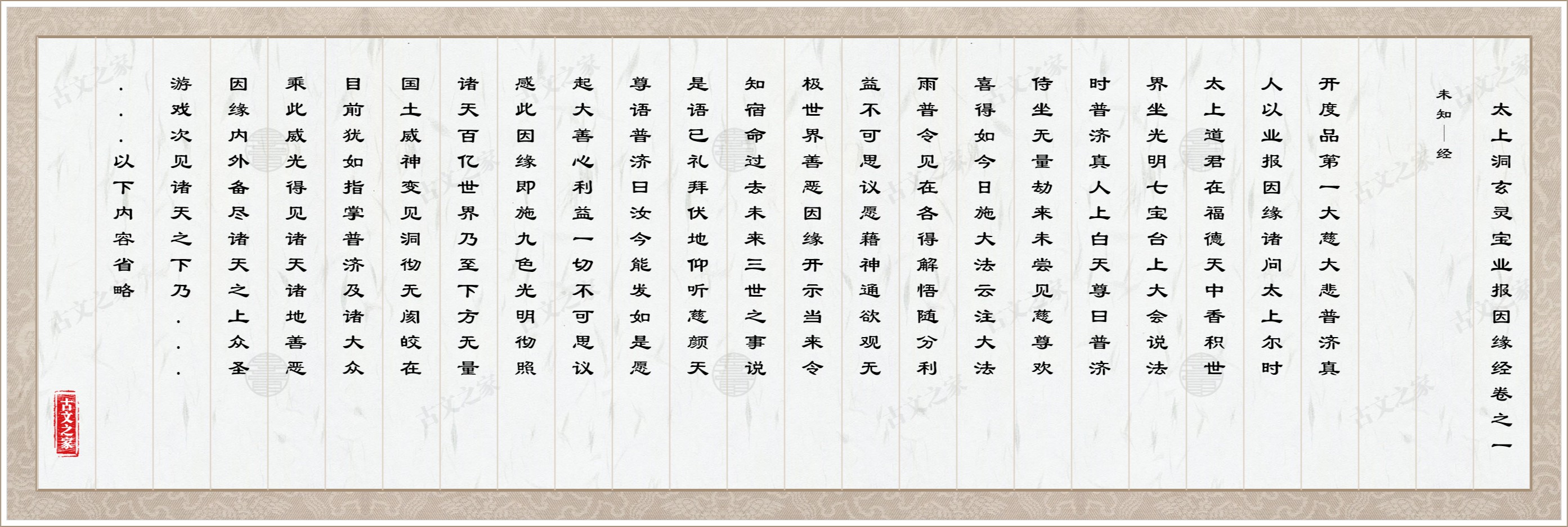 道君答曰:善哉,善哉。普济能发如此深心,开诸法利,觉悟群生宿命因缘,不可思义。汝可伏听,吾今为汝分别说之。