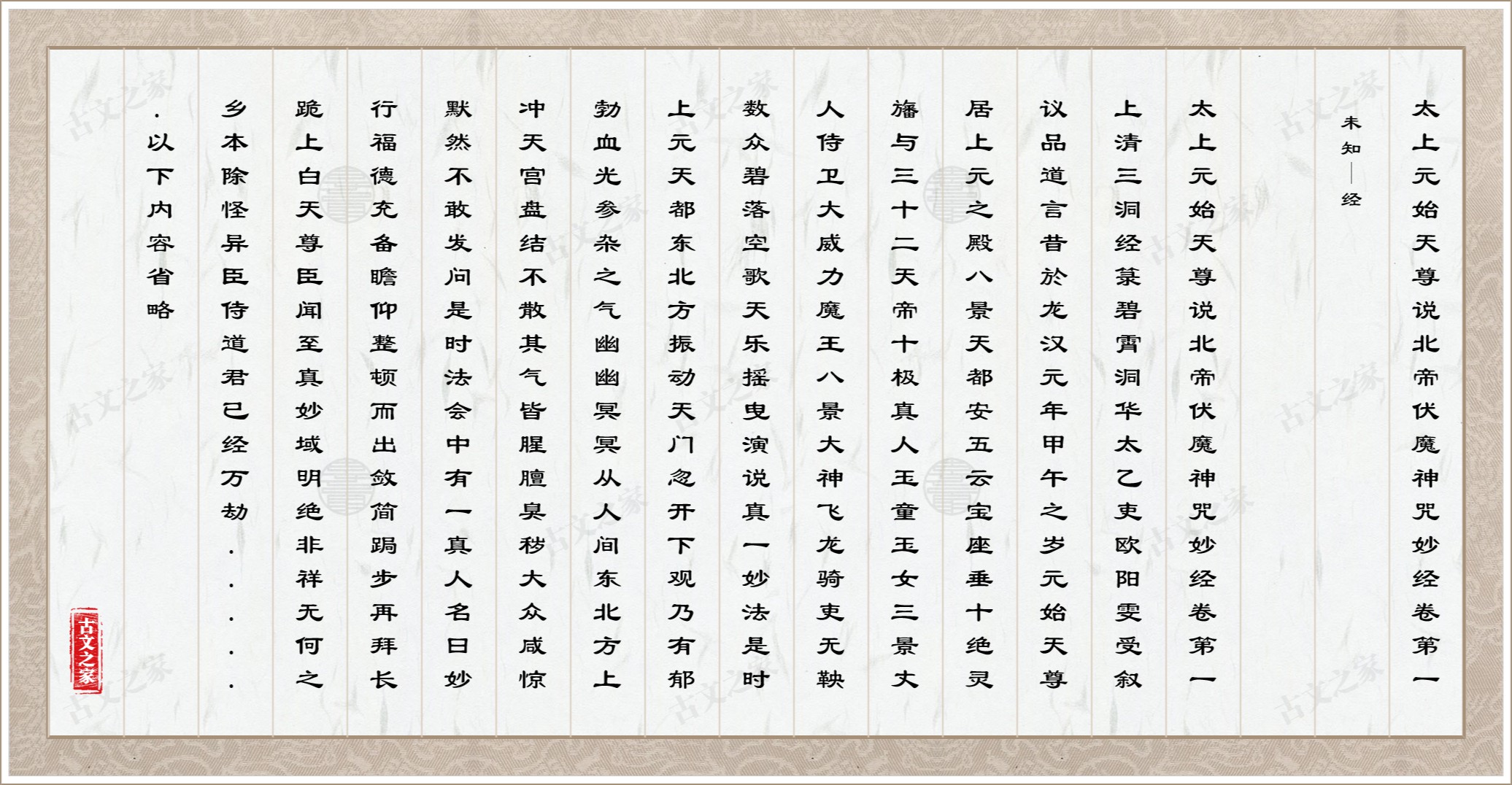 太上元始天尊说北帝伏魔神咒妙经卷第一竟