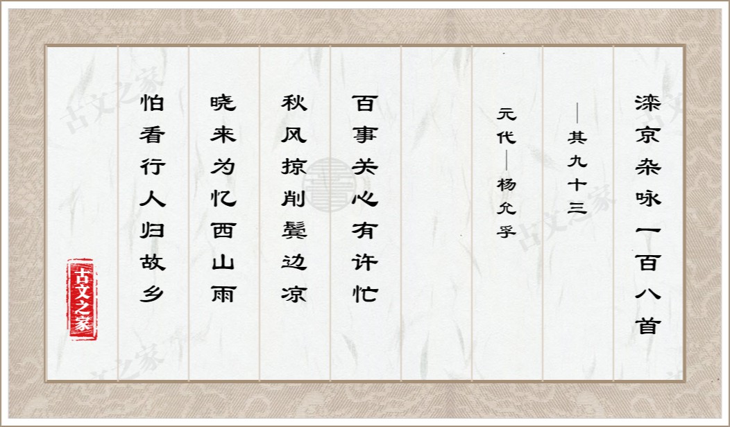 说明:古文之家的工作重心是对古诗文进行校对并注音,我们所提供的译文、注释均来自互联网收集聚合,仅供参考,文章所涉及的字、词发音请以拼音版作为主要参考。