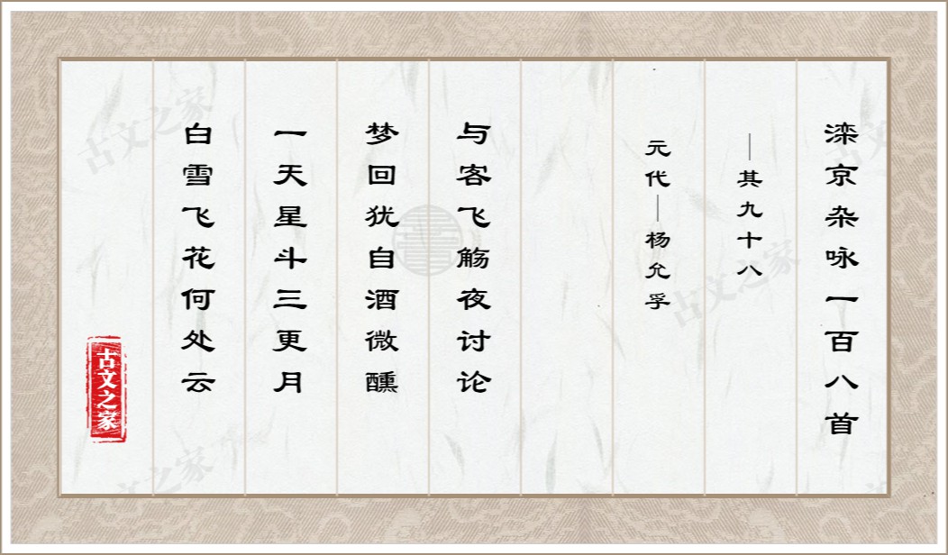 说明:古文之家的工作重心是对古诗文进行校对并注音,我们所提供的译文、注释均来自互联网收集聚合,仅供参考,文章所涉及的字、词发音请以拼音版作为主要参考。