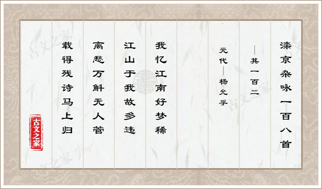 说明:古文之家的工作重心是对古诗文进行校对并注音,我们所提供的译文、注释均来自互联网收集聚合,仅供参考,文章所涉及的字、词发音请以拼音版作为主要参考。