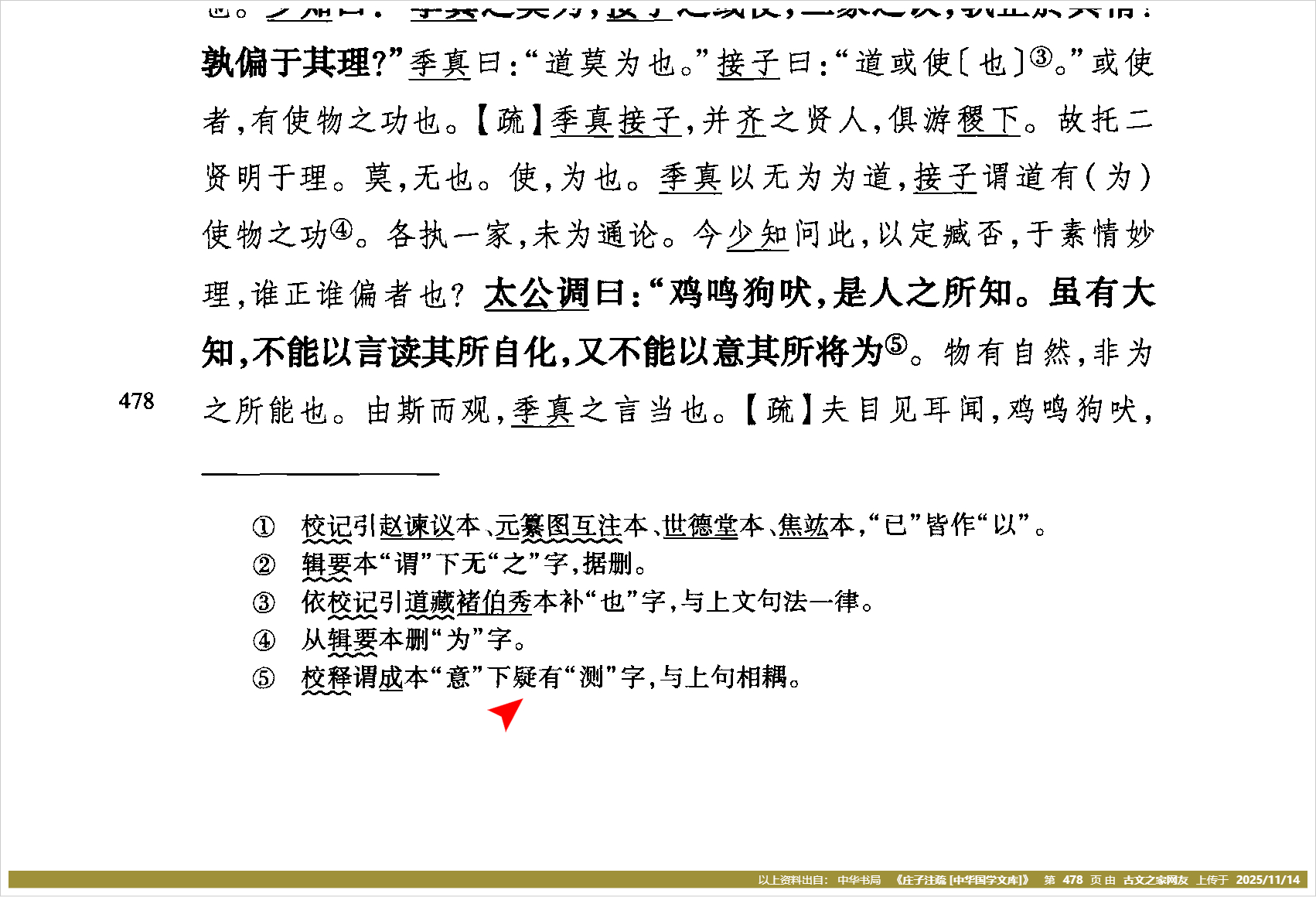 【第3_1楼】参照中华书局的《庄子注疏 [中华国学文库]》第(478)页 ,内容。本文已对相关内容进行了更正。再次感谢您为本文注音所作出的贡献。