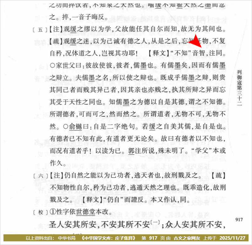 【第1_1楼】可参照中华书局的《中华国学文库:庄子集释》第(917)页 ,内容。非常感谢来自热心读者{:1.81.*.*}的纠错指正,经过我们的人工核对,本文已对相关内容进行了更正。再次感谢您为本文注音所作出的贡献。