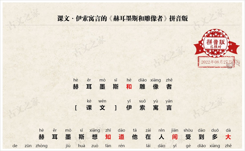 《赫耳墨斯和雕像者》拼音版,可打印PDF文档下载伊索寓言