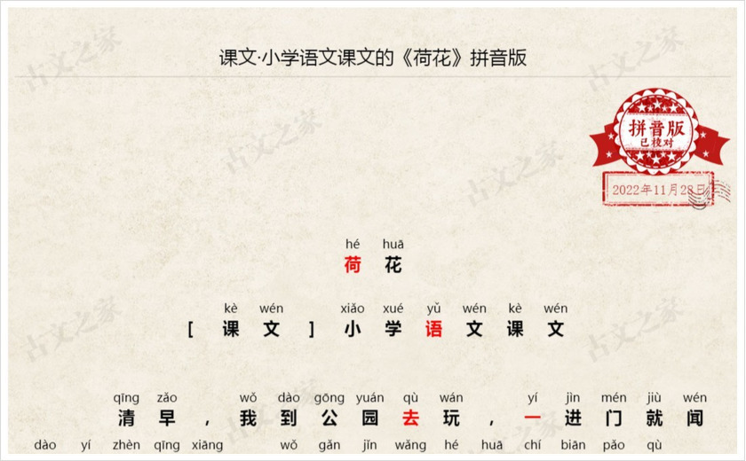 《荷花》拼音版,可打印PDF文档下载小学语文课文