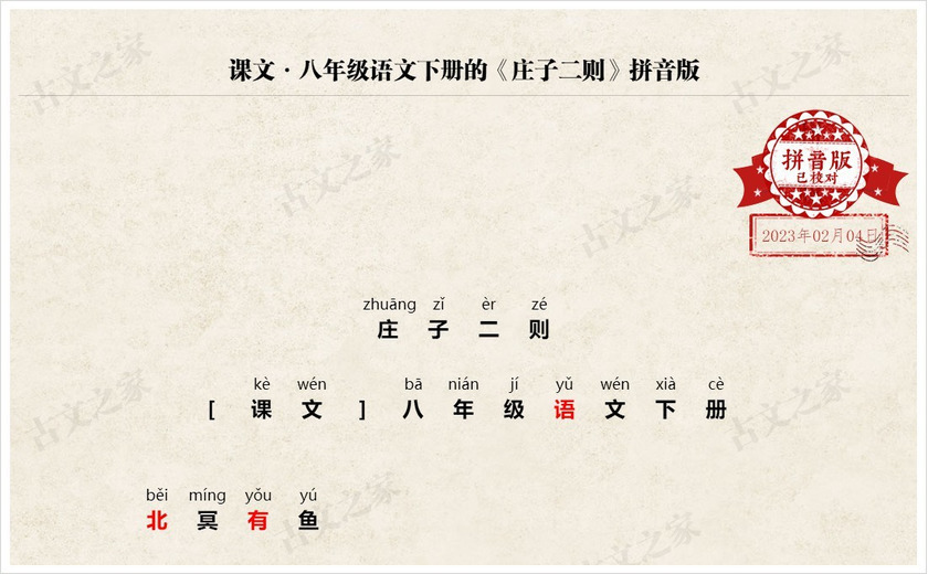 《庄子二则》由八年级语文下册创作本页最后更新时间:2025/7/24 9:11:40
