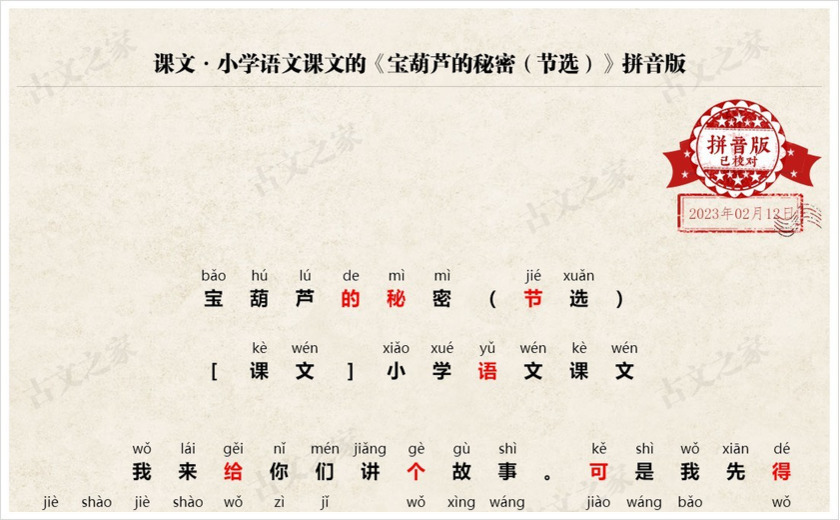 《宝葫芦的秘密(节选)》拼音版,可打印PDF文档下载小学语文课文