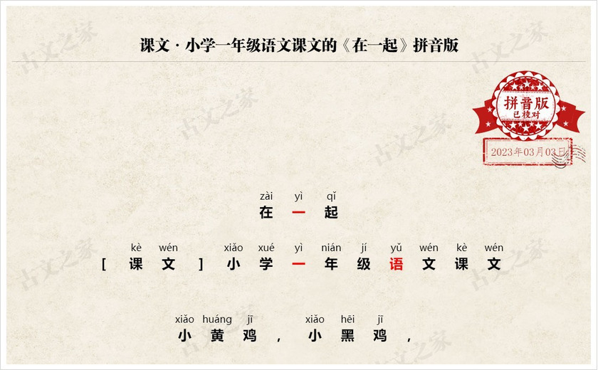 《在一起》拼音版,可打印PDF文档下载小学一年级语文课文