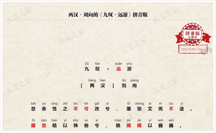 《九叹·远游》拼音版,可打印PDF文档下载刘向