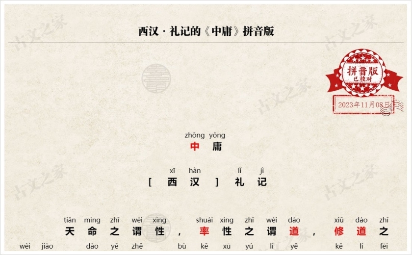 《中庸》拼音版,可打印PDF文档下载礼记-文言文