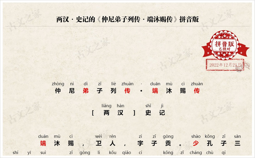 《仲尼弟子列传·端沐赐传(子贡篇)》拼音版,可打印PDF文档下载史记-文言文