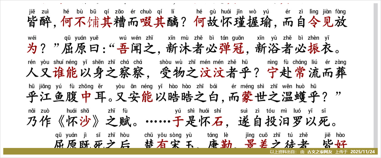 - 读贾谊凭吊他的文章,文中责怪屈原如果凭借才能游说诸侯,哪个国家不会接纳,何必选择这样的道路?