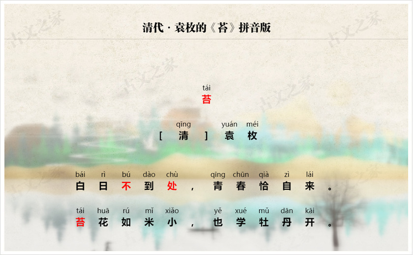 《苔》拼音版、节奏划分及断句,可打印PDF文档下载袁枚
