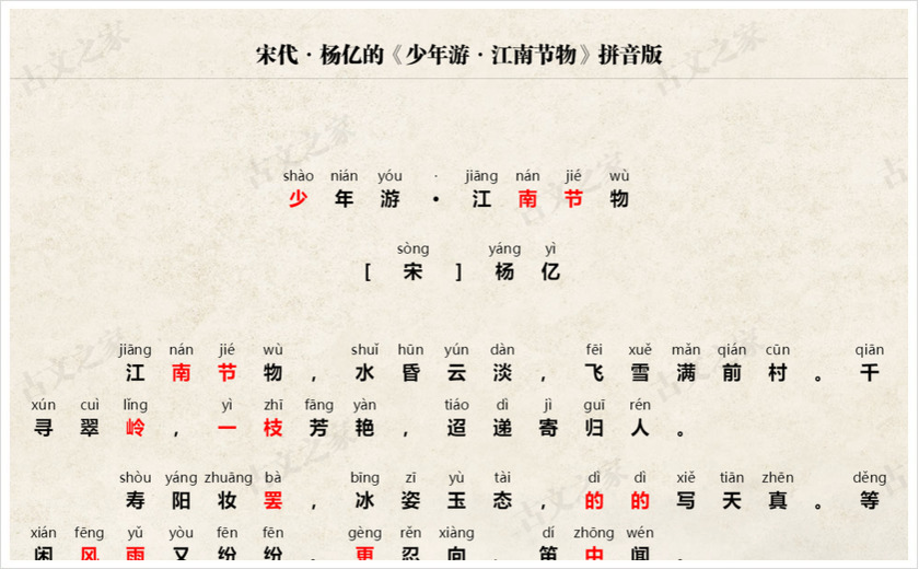 《少年游·江南节物》拼音版,可打印PDF文档下载杨亿