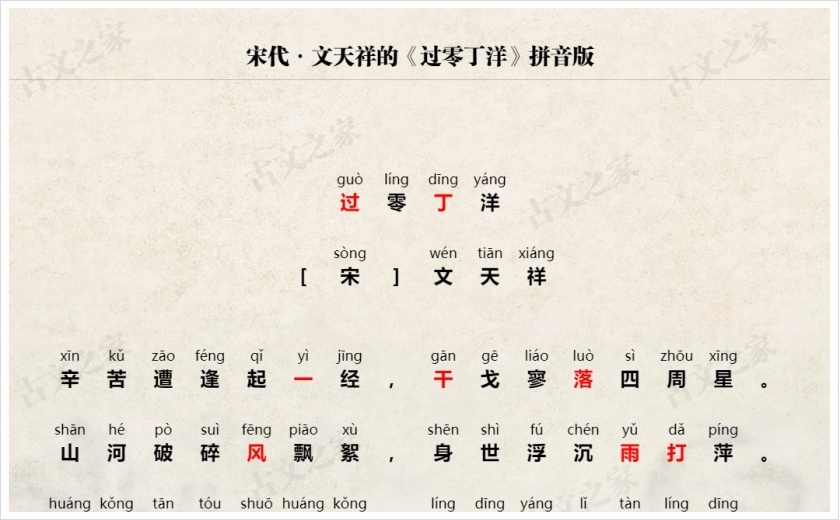 - 〔惶恐滩:在今江西万安境内赣 江中,水流湍急,极为险恶。 宋端宗景炎二年(1277),文天 祥在江西兵败,经惶恐滩退往 广东。〕 头说惶恐,零丁洋里叹零丁