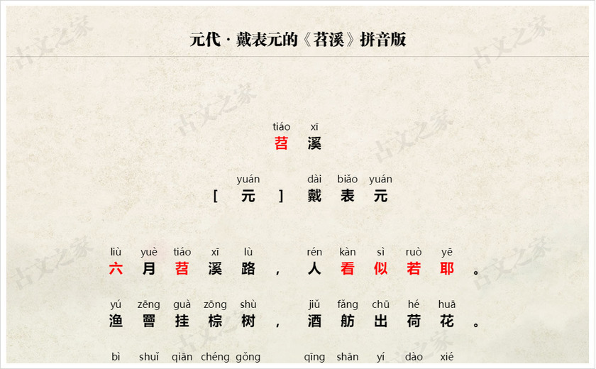 《苕溪》拼音版,可打印PDF文档下载戴表元