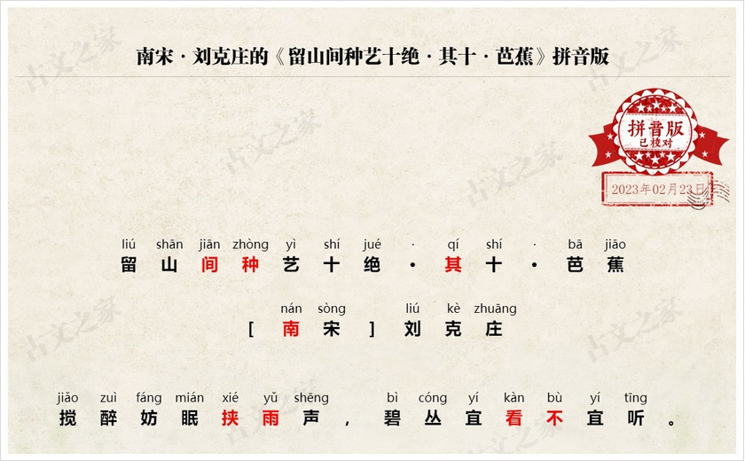 《留山间种艺十绝·其十·芭蕉》拼音版,可打印PDF文档下载刘克庄