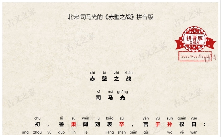 《赤壁之战》拼音版,可打印PDF文档下载司马光-文言文