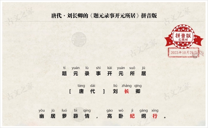 (我们坚持对每一篇古诗文进行人工查证并注音、我们亲自查证并回复来自您的每一次纠错,只为给您一份更为准确的拼音版本,请记住我们:古文之家)