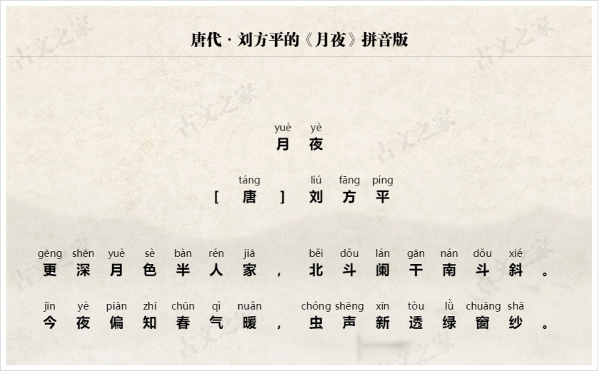 - 夜深人静,月光只照亮了房屋的一半,另一半则隐没在黑暗中,北斗星斜了,南斗星也歪了。