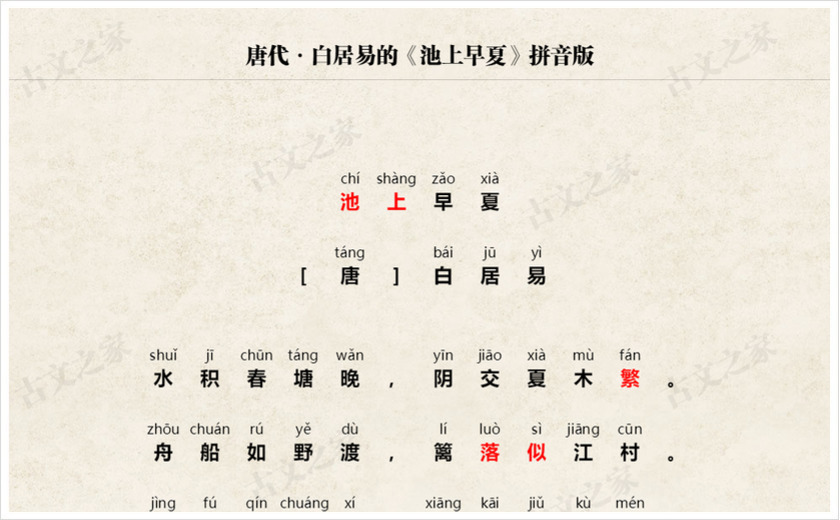 《池上早夏》拼音版,可打印PDF文档下载白居易