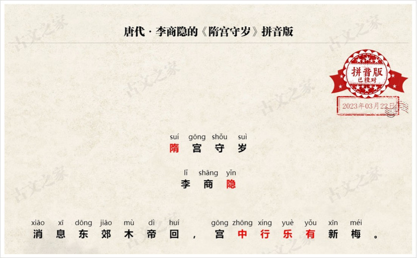 《隋宫守岁》拼音版,可打印PDF文档下载李商隐