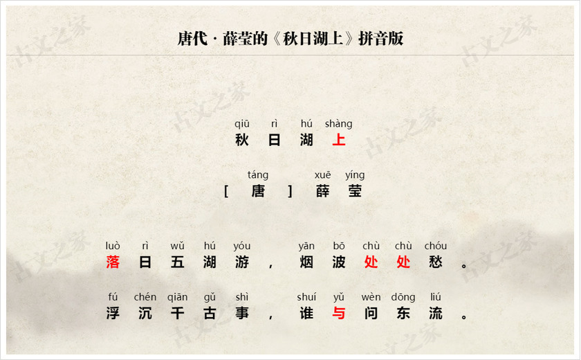 《秋日湖上》拼音版,可打印PDF文档下载薛莹