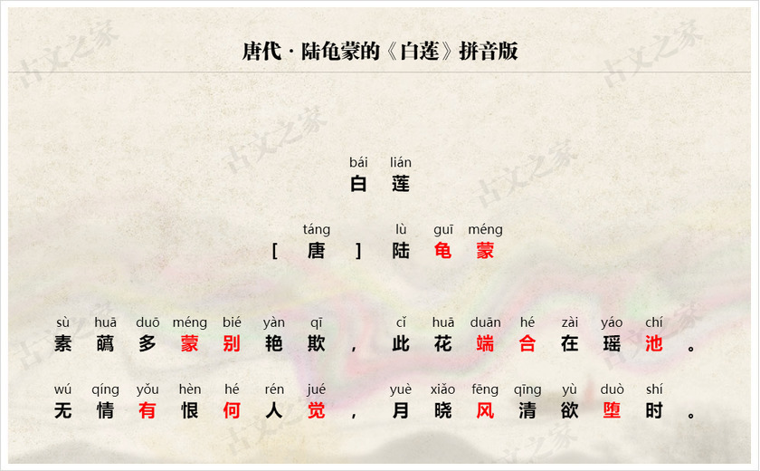 《白莲》拼音版,可打印PDF文档下载陆龟蒙
