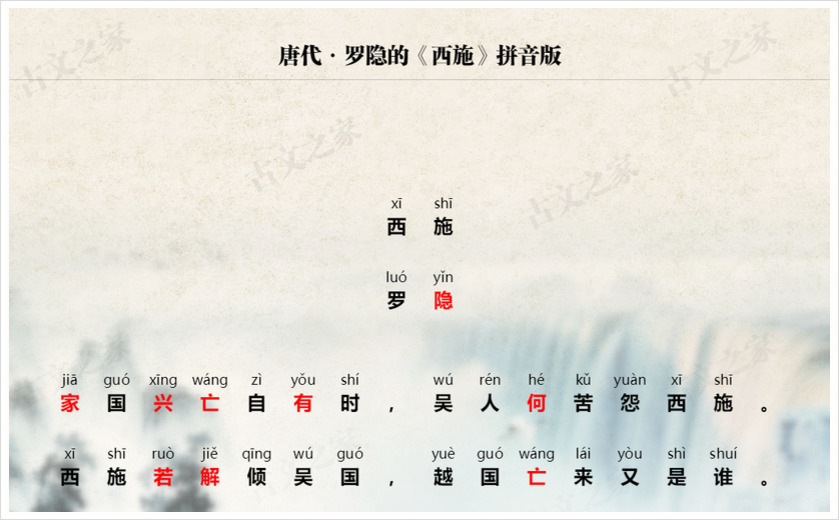 《西施》拼音版,可打印PDF文档下载罗隐