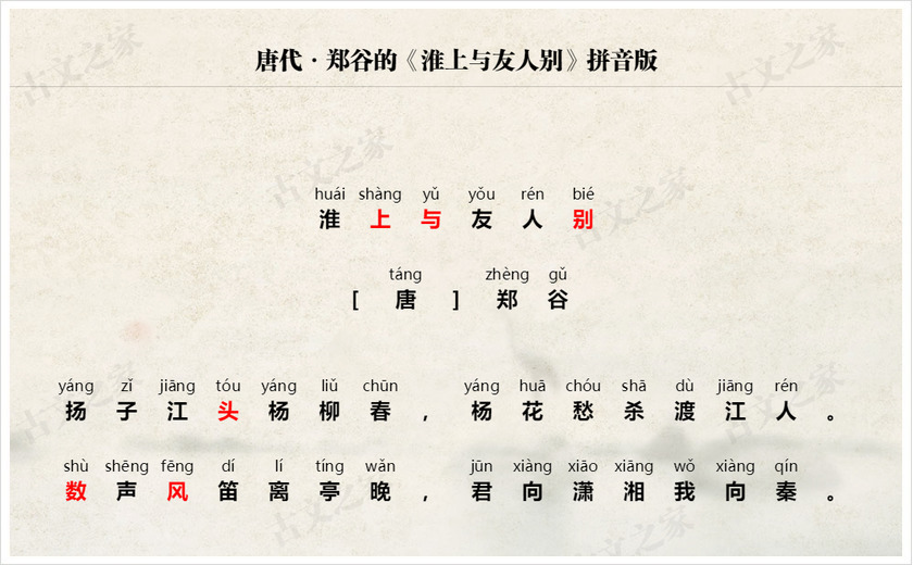 (我们坚持对每一篇古诗文进行人工查证并注音、我们亲自查证并回复来自您的每一次纠错,只为给您一份更为准确的拼音版本,请记住我们:古文之家)