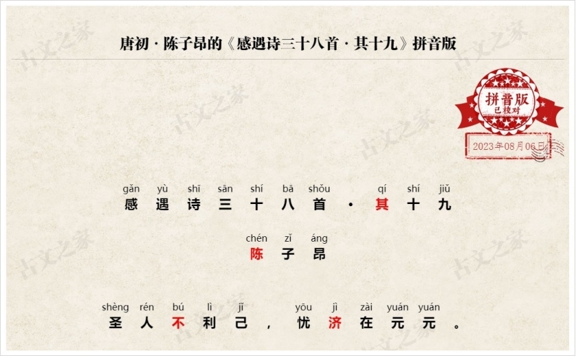 (我们坚持对每一篇古诗文进行人工查证并注音、我们亲自查证并回复来自您的每一次纠错,只为给您一份更为准确的拼音版本,请记住我们:古文之家)