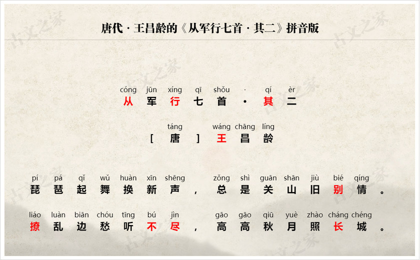 《从军行七首·其二》拼音版,可打印PDF文档下载王昌龄