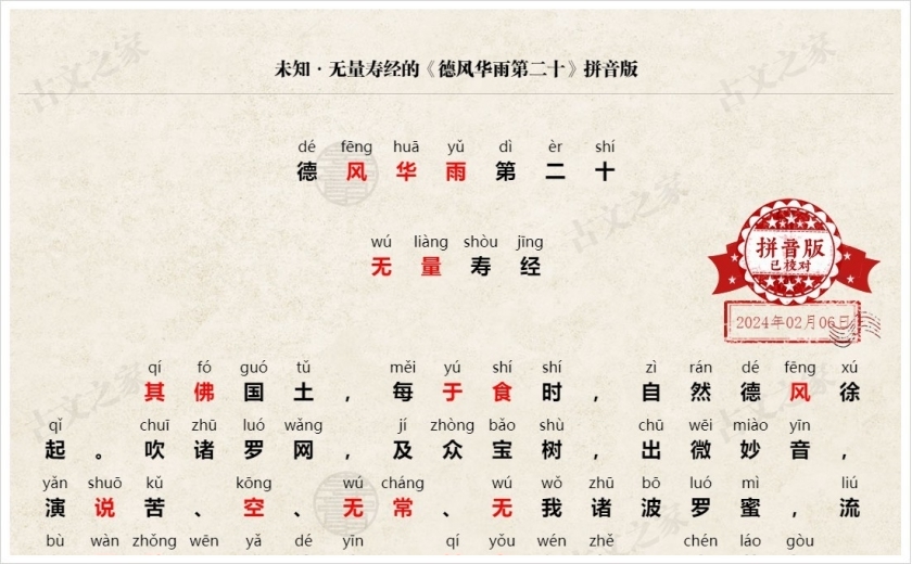 拼音全文:(我们坚持对每一篇古诗文进行人工查证并注音、我们亲自查证并回复来自您的每一次纠错,只为给您一份更为准确的拼音版本,请记住我们:古文之家)
