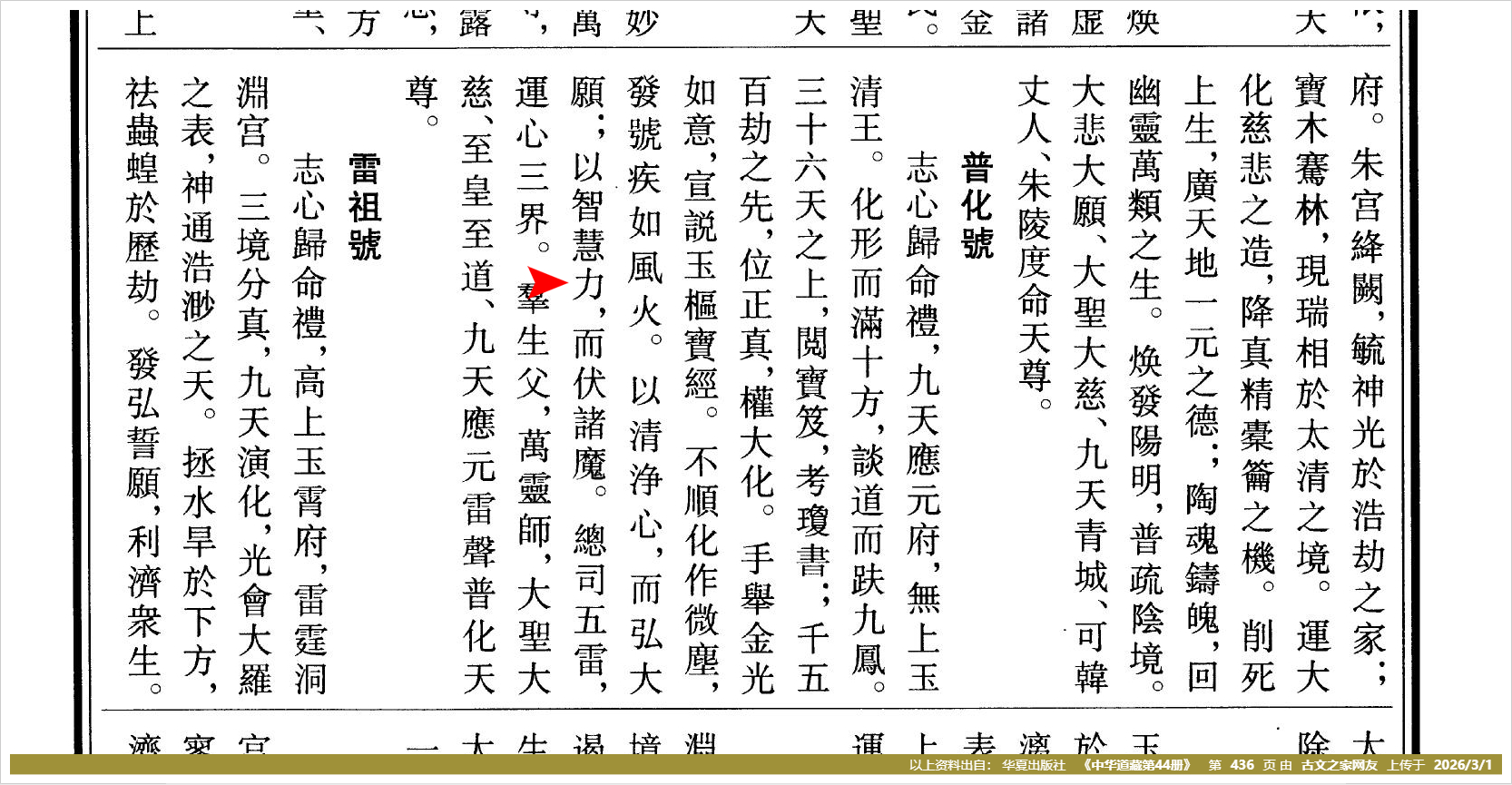 【第1_1楼】可参照华夏出版社的《中华道藏第44册》第(436)页 ,内容。非常感谢来自热心读者{:14.212.*.*}的纠错指正,经过我们的人工核对,本文已对相关内容进行了更正。再次感谢您为本文注音所作出的贡献。