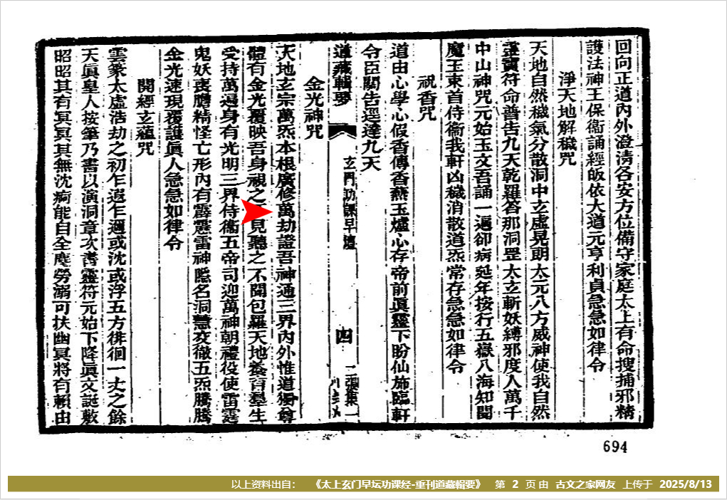 【第2_1楼】可参照的《太上玄门早坛功课经-重刊道藏輯要》第(2)页 内容。