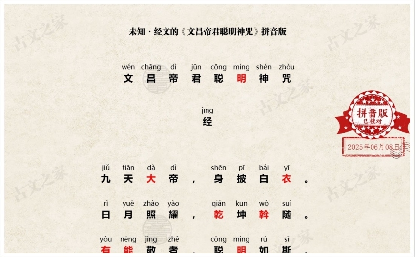 《文昌帝君聪明神咒》由经文创作本页最后更新时间:2025/7/22 21:06:39