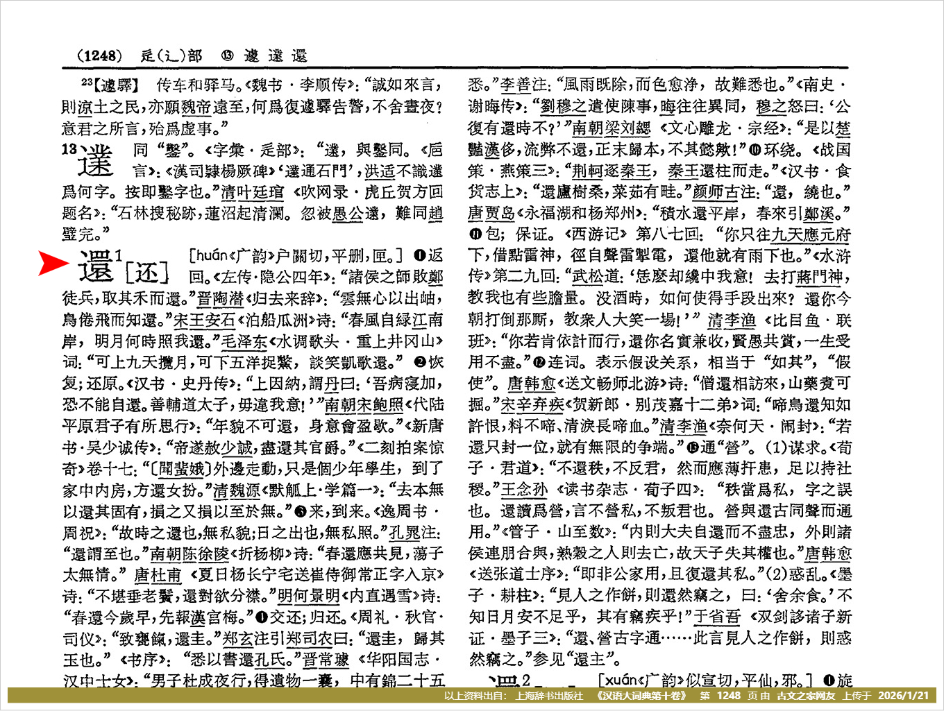 【第10_1楼】参照商务印书馆的《古代汉语词典 第二版》第(1040)页 内容。本文已对相关内容进行了更正。再次感谢您为本文注音所作出的贡献。