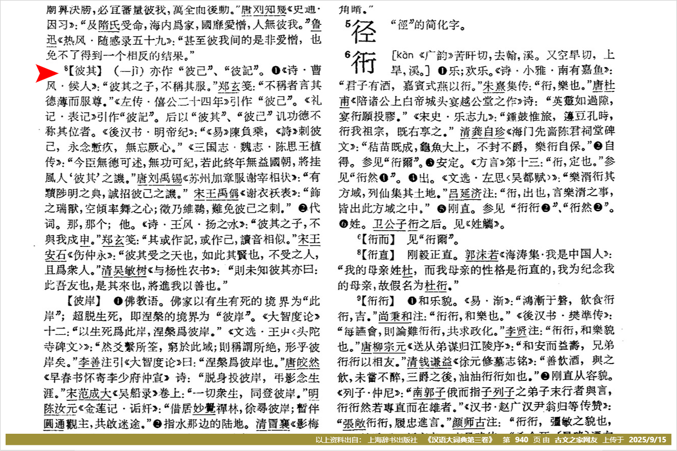 【第1_1楼】可参照上海辞书出版社的《汉语大词典第三卷》第(940)页 内容。非常感谢来自热心读者{:61.155.*.*}的纠错指正,经过我们的人工核对,本文已对相关内容进行了更正。再次感谢您为本文注音所作出的贡献。